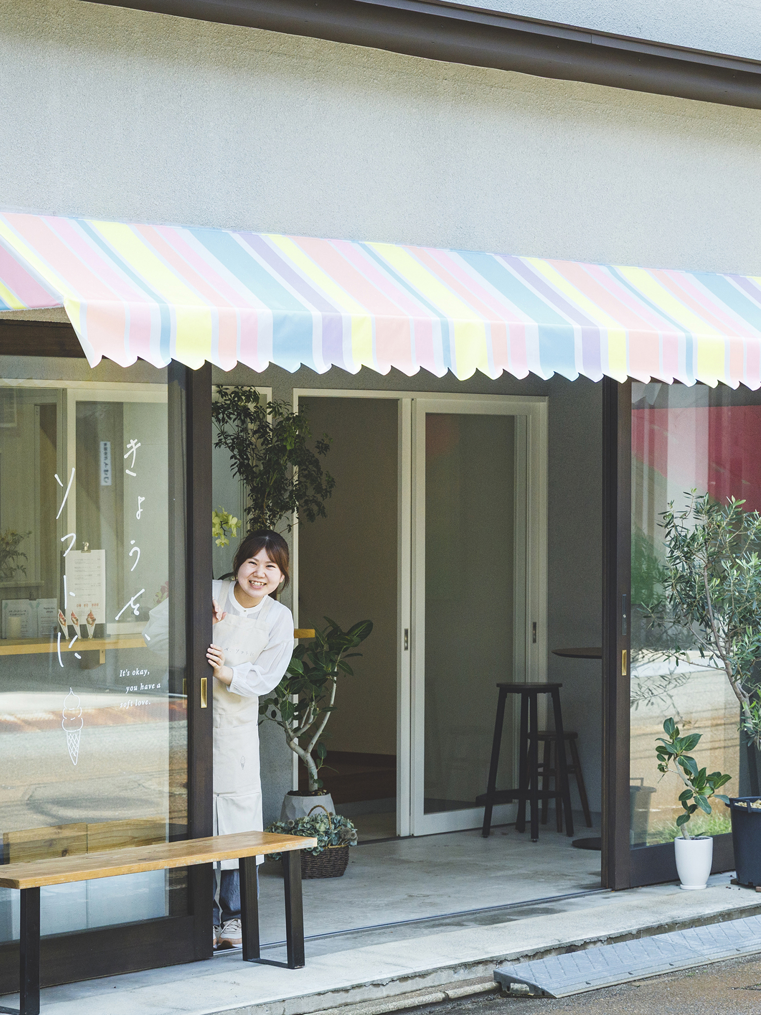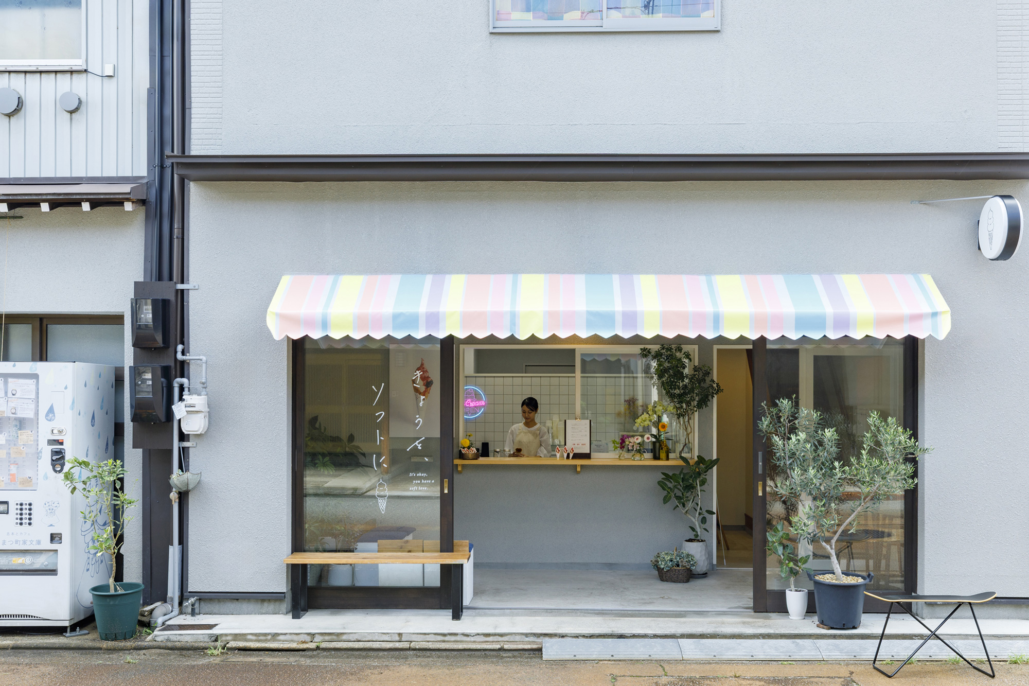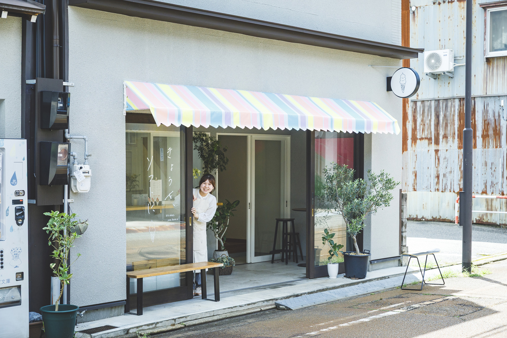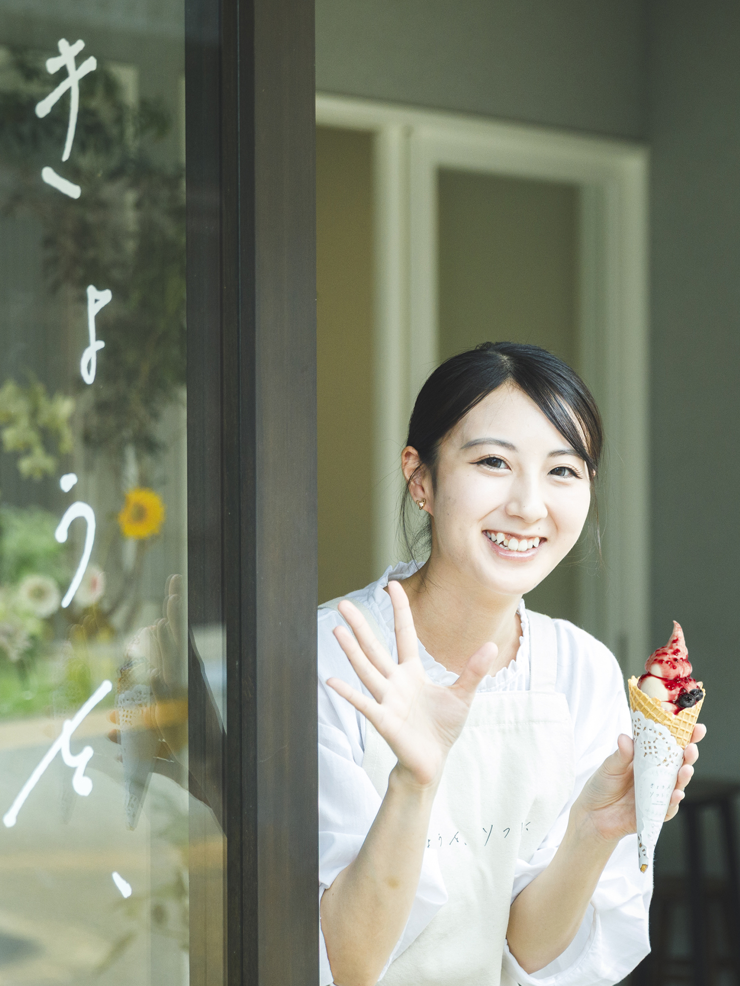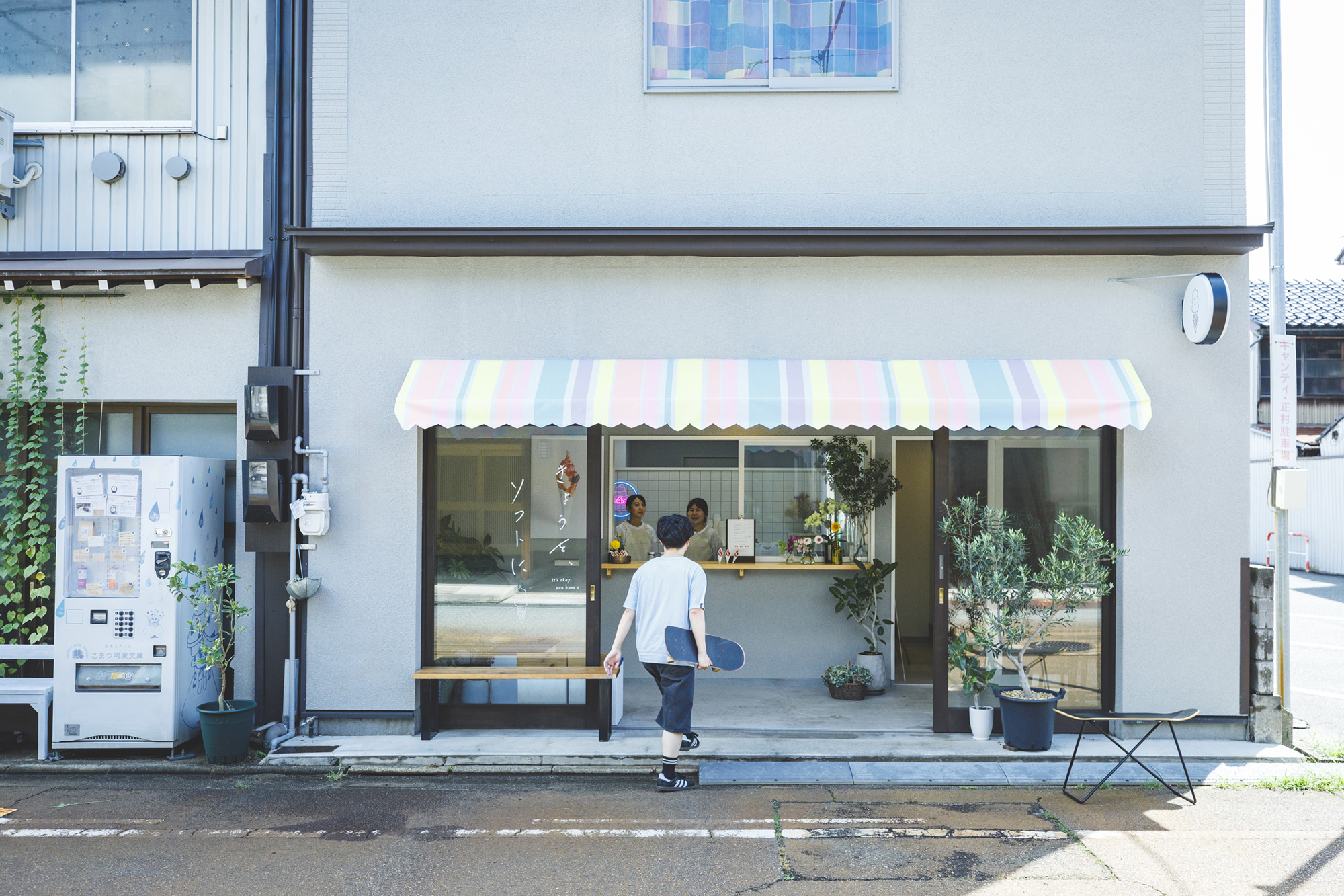 「きょうを、ソフトに」。石川県小松市にオープンした、ヴィーガンソフトクリームのお店。地元産の豆乳、米麹、アガベシロップなど、植物由来の材料でつくられたカラダに優しいソフトクリームを提供。来店者の毎日を「きょうを、ソフトに」することがミッション。
