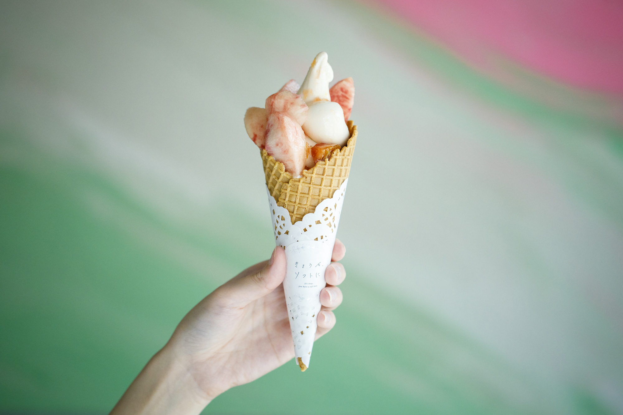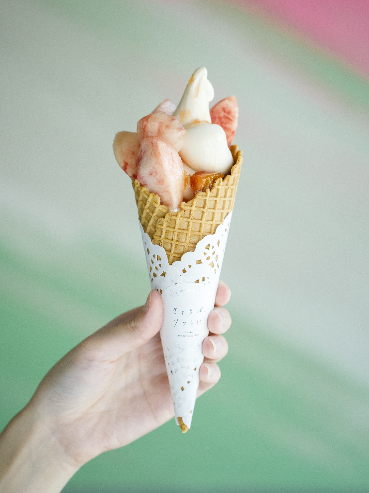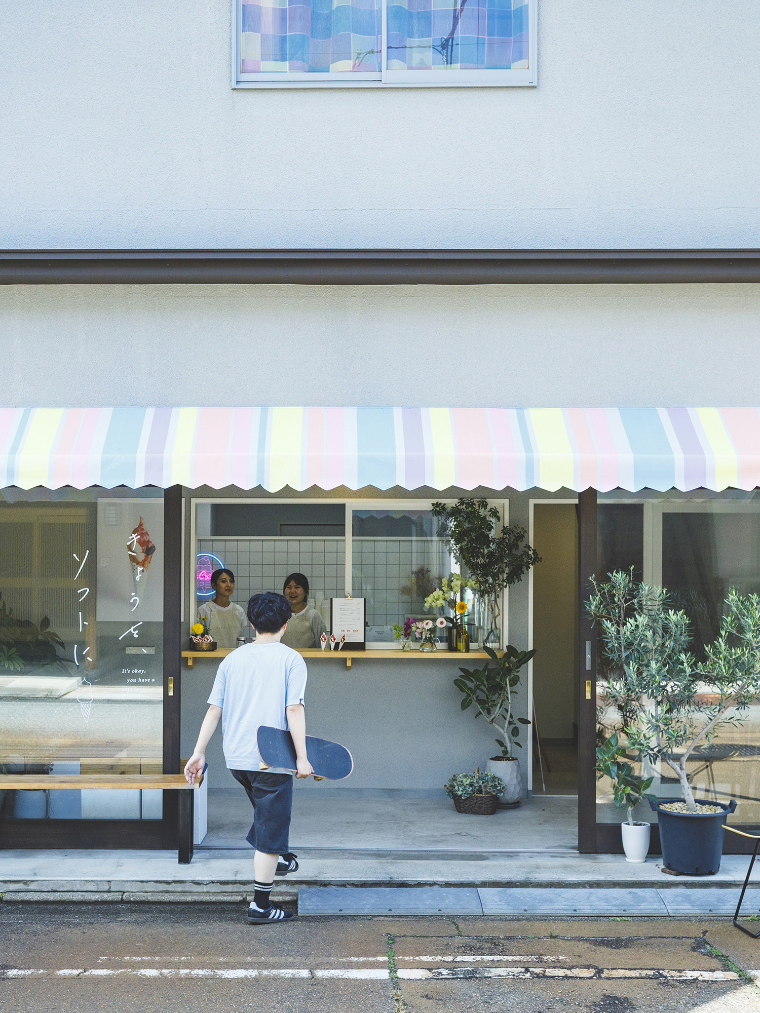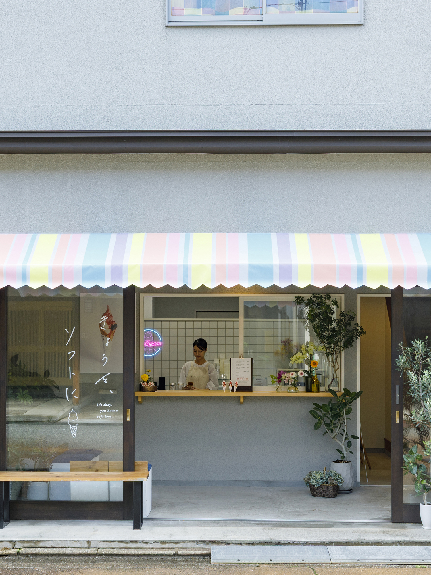 「きょうを、ソフトに」。石川県小松市にオープンした、ヴィーガンソフトクリームのお店。地元産の豆乳、米麹、アガベシロップなど、植物由来の材料でつくられたカラダに優しいソフトクリームを提供。来店者の毎日を「きょうを、ソフトに」することがミッション。